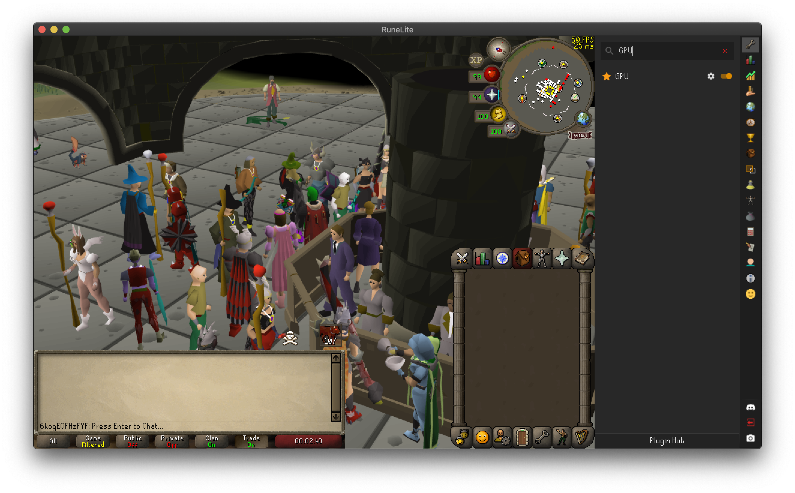 The GPU plugin now supports rasterization on MacOS! Users using Mac OSX should notice significant performance improvements with the GPU plugin on; we have seen 20+ FPS as well as lower CPU utilization. Due to limitations of OpenGL on MacOS the plugin does not offer extended draw distance at this time. We plan to continue development of the plugin to add extended draw distance support on MacOS in the future.
